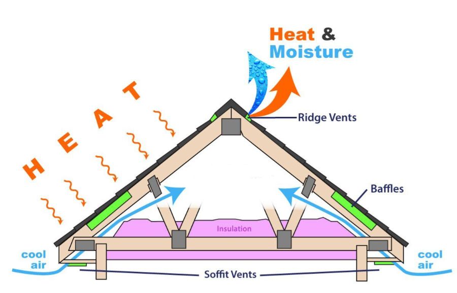 Attics need a steady flow of fresh air coming in and stale, moist air going out.