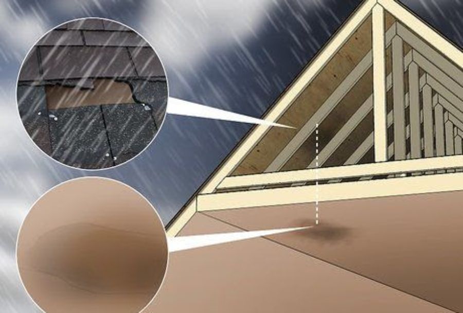 Damaged shingles, flashing, or siding can let rain or melting snow enter the attic.