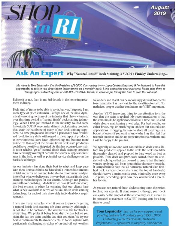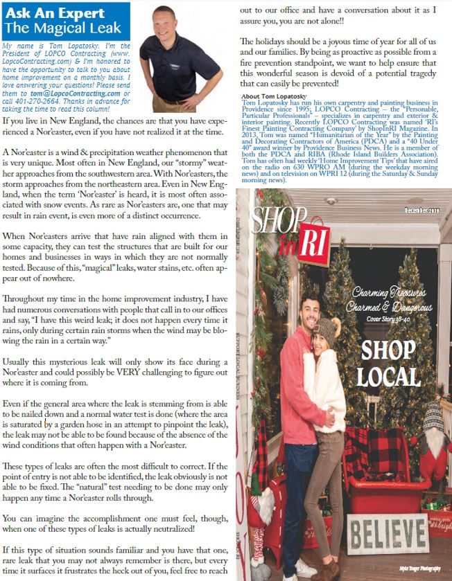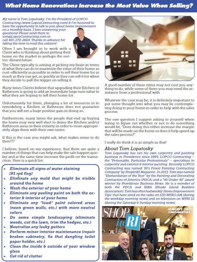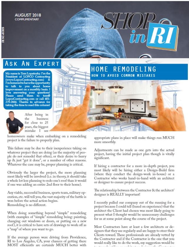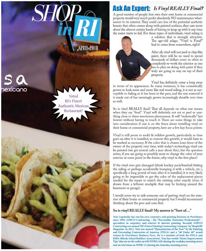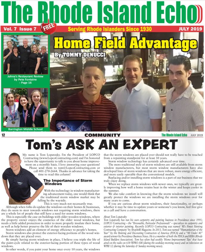 In addition to LOPCO, Tom also owns Cheer UP Athletics – an All-Star Cheerleading Gym located in East Providence, RI – and The Smithfield Times. Tom is an avid New York Yankee, University of South Carolina (ALL of their sports!), and Providence College Basketball fan. Tom’s extensive experience and overall industry knowledge have made Tom one of the most sought-after experts in the Home Improvement Industry. Remarkably, Tom is often even called upon by other contractors to help them through challenges in their businesses (often speaking at National Industry Conferences). Because he has made it a focus to delve into and solve problems that others in the industry simply want nothing to do with, Tom has become an invaluable resource for homeowners near and far. With all being said, it confidently is safe to say that Tom Lopatosky truly is – The Home Improvement Expert!!!