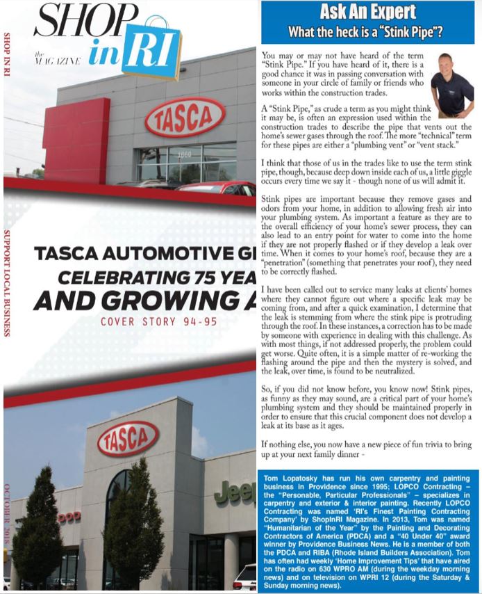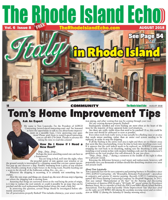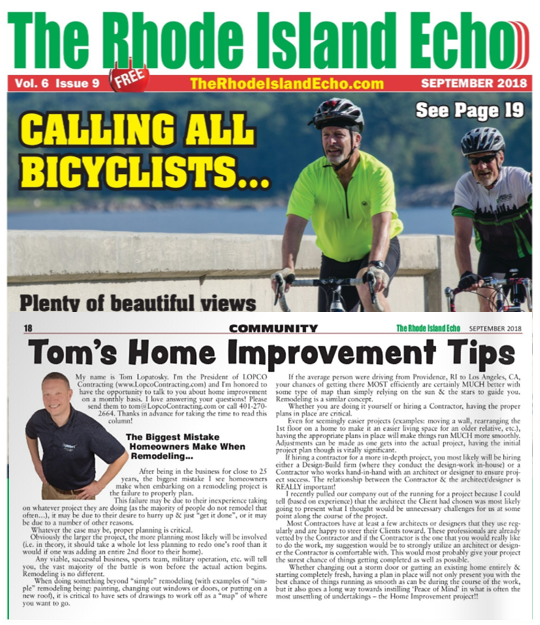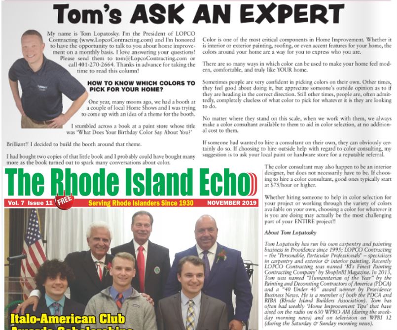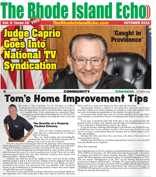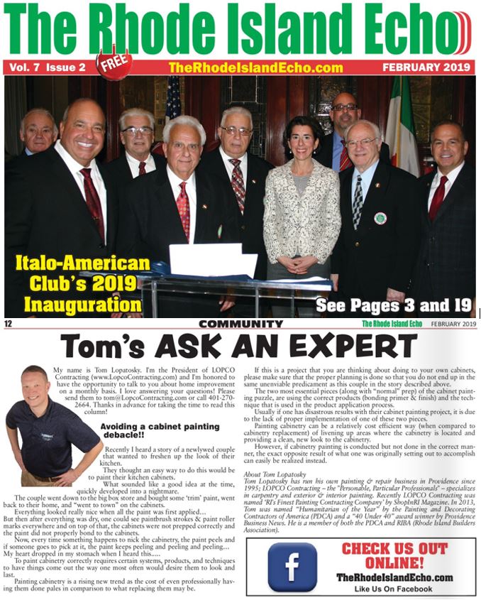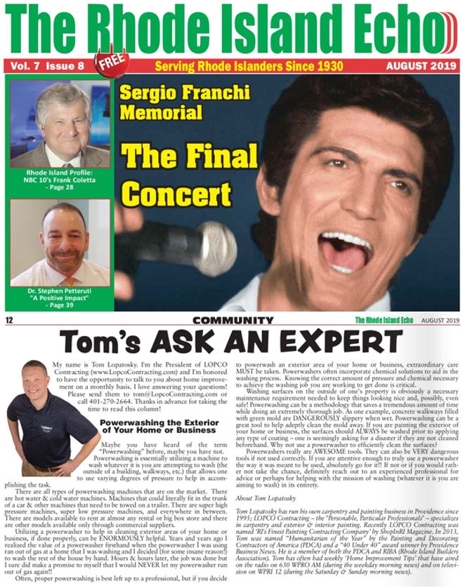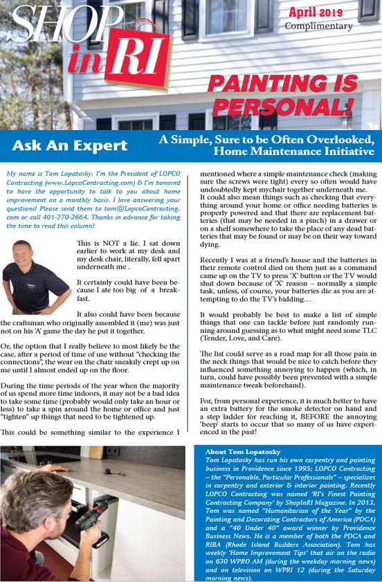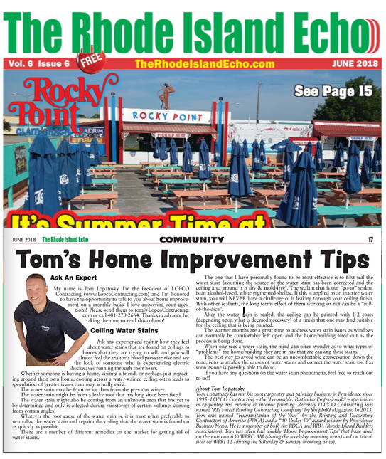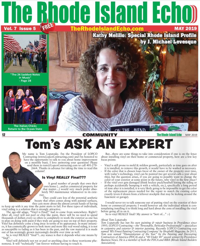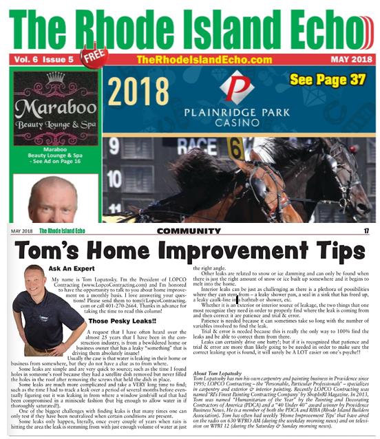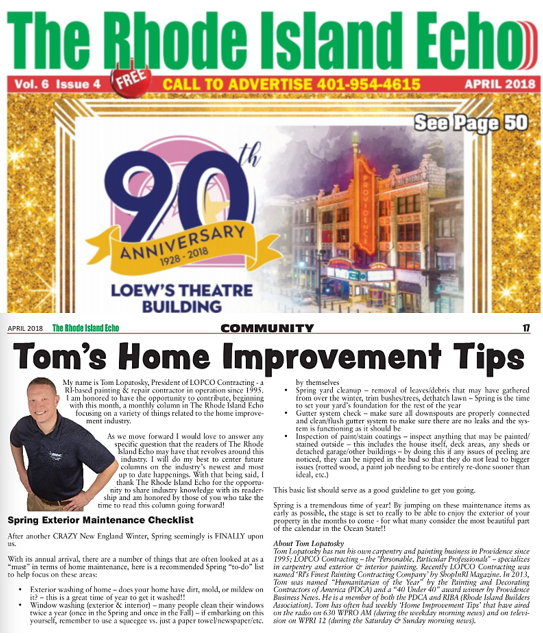 In 2006 Tom was inducted into the Classical High School Athletic Hall of Fame. Over the years Tom has been a contributing writer and/or columnist for ExpertBeacon.com, RI Local Magazine, ShopInRI Magazine, The Jewish Voice, The Rhode Island Echo, The RI Wave, the East Providence Reporter, and The Smithfield Times and also has had weekly Home Improvement Tips that have run on the radio (630AM & 99.7FM WPRO in the RI area) and on television (WPRI 12 in the RI area).