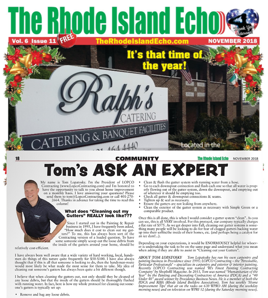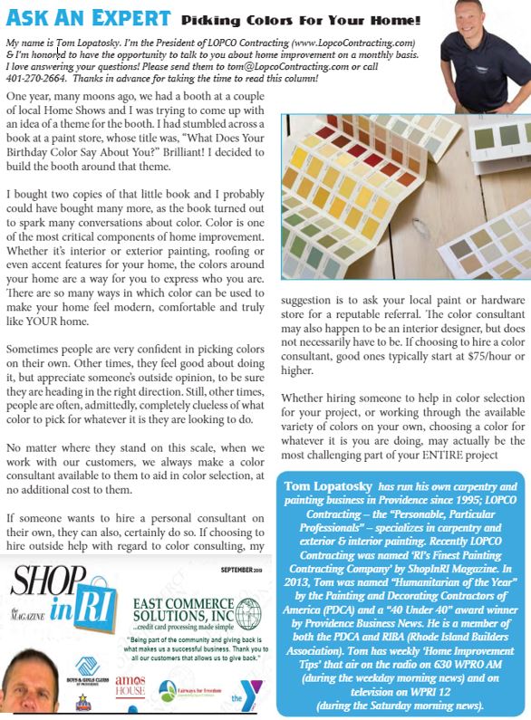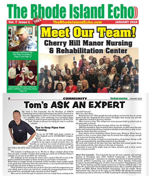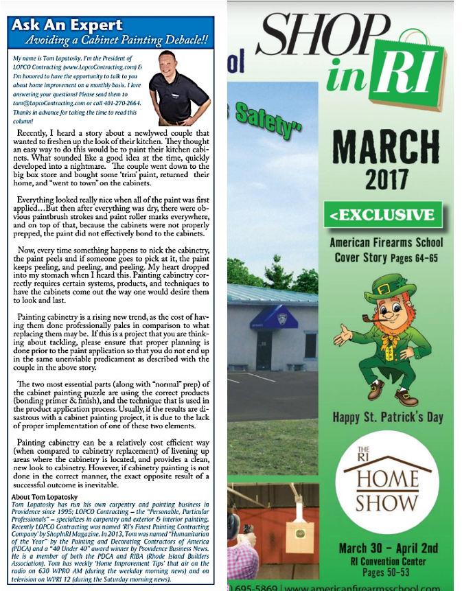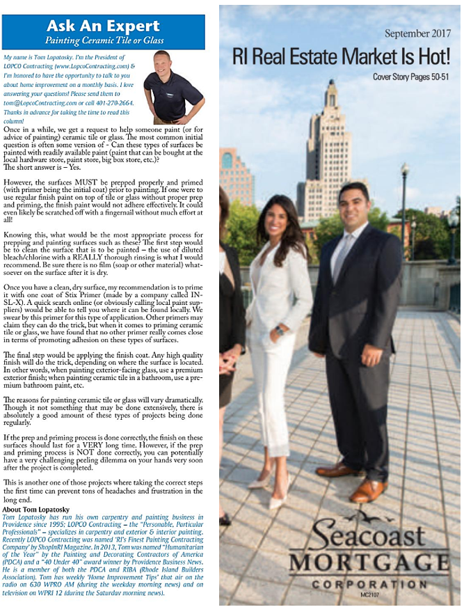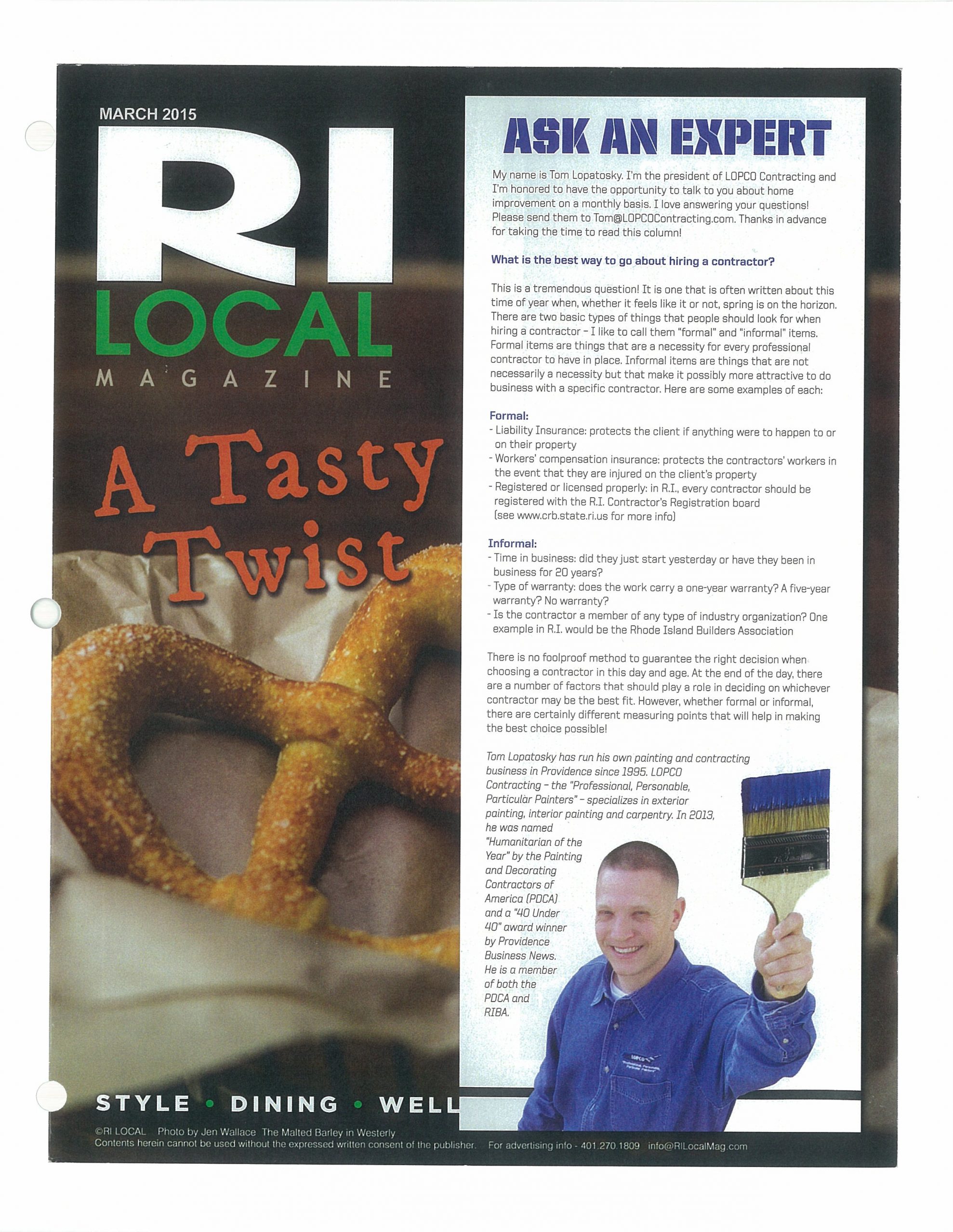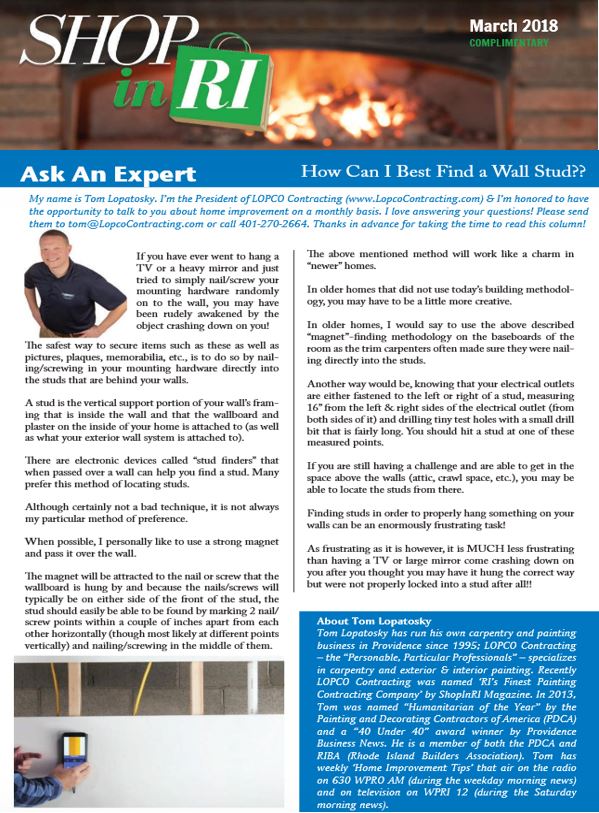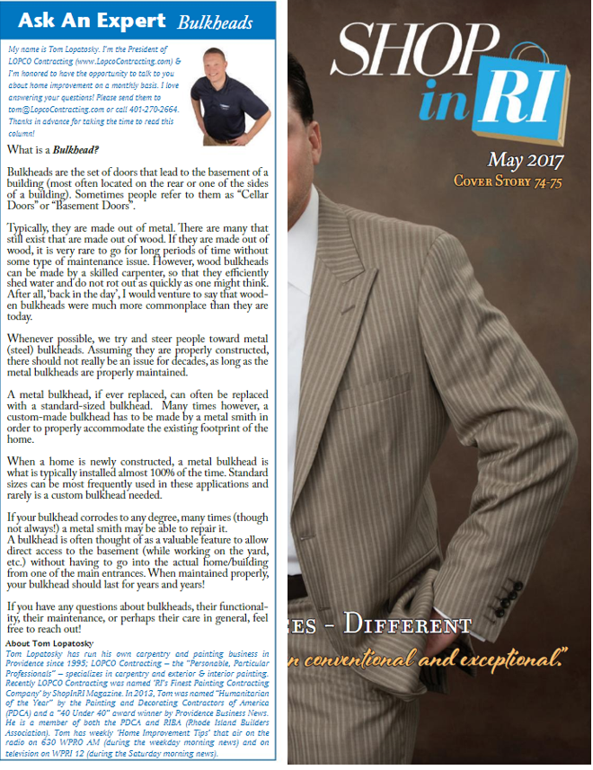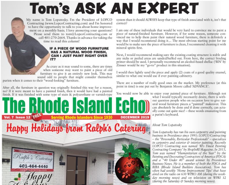 In 2006 Tom was inducted into the Classical High School Athletic Hall of Fame. Over the years Tom has been a contributing writer and/or columnist for ExpertBeacon.com, RI Local Magazine, ShopInRI Magazine, The Jewish Voice, The Rhode Island Echo, The RI Wave, the East Providence Reporter, and The Smithfield Times and also has had weekly Home Improvement Tips that have run on the radio (630AM & 99.7FM WPRO in the RI area) and on television (WPRI 12 in the RI area).