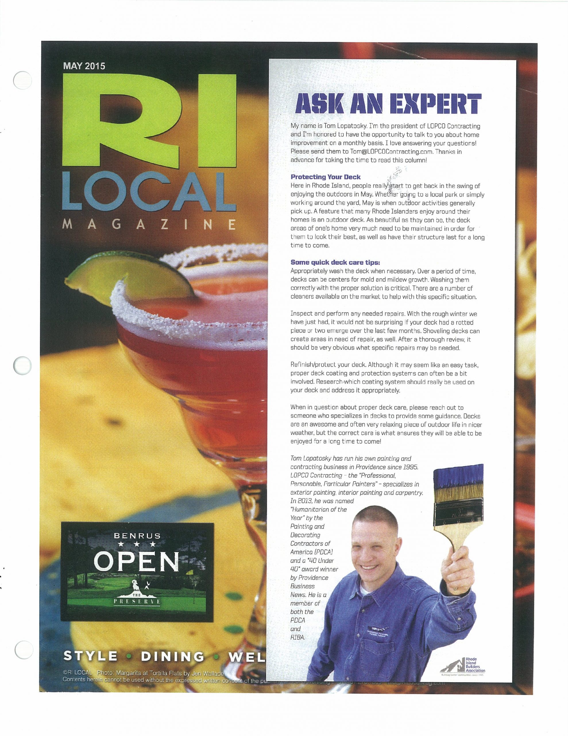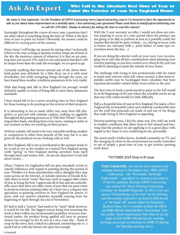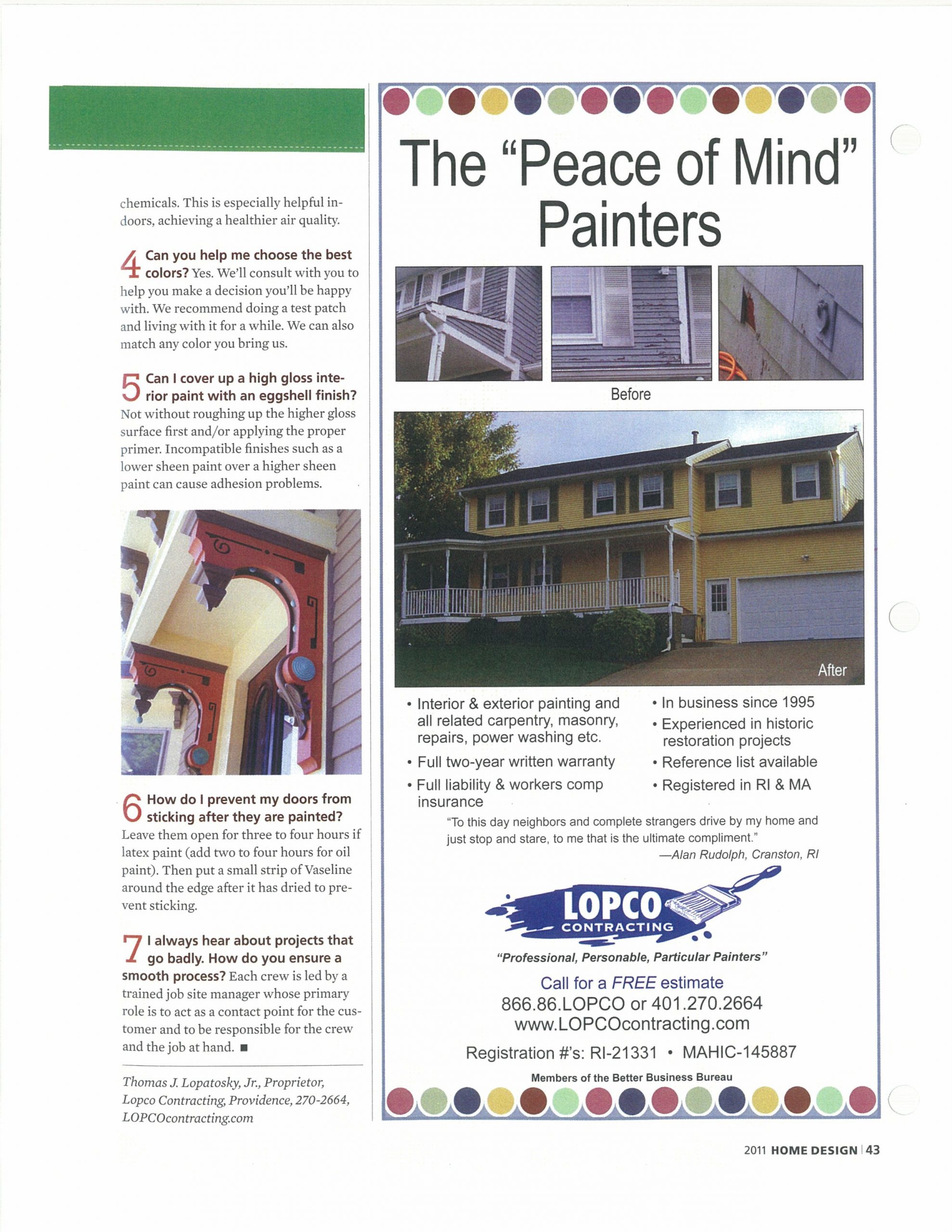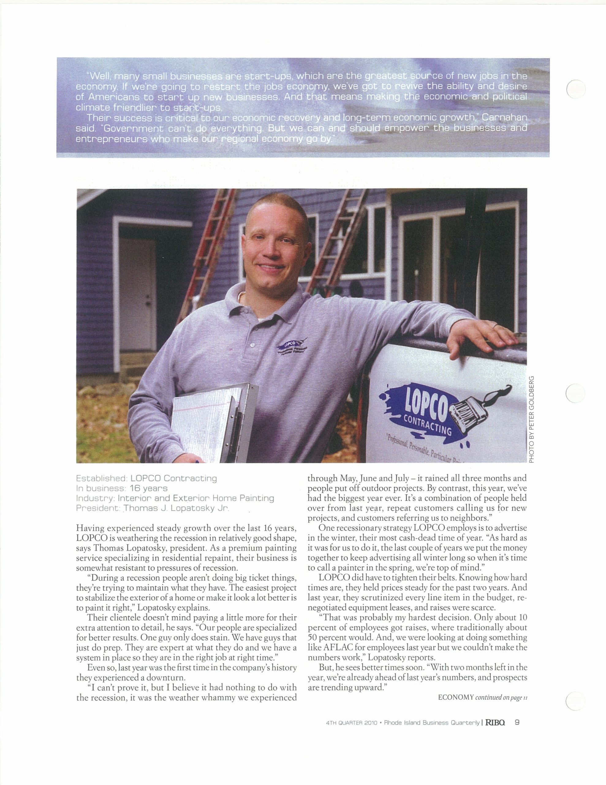 Under Tom’s leadership, the company culture of striving to overdeliver on every project they undertake has led to much repeat business and their clients are often very happy to tell their friends and families about their experiences with LOPCO. This has helped tremendously as LOPCO has sought to further increase their customer base. Tom’s long-term goal for the company is “To lead LOPCO Contracting in continuing to paint and build the way to social consciousness while becoming the largest painting and repair company in New England.”