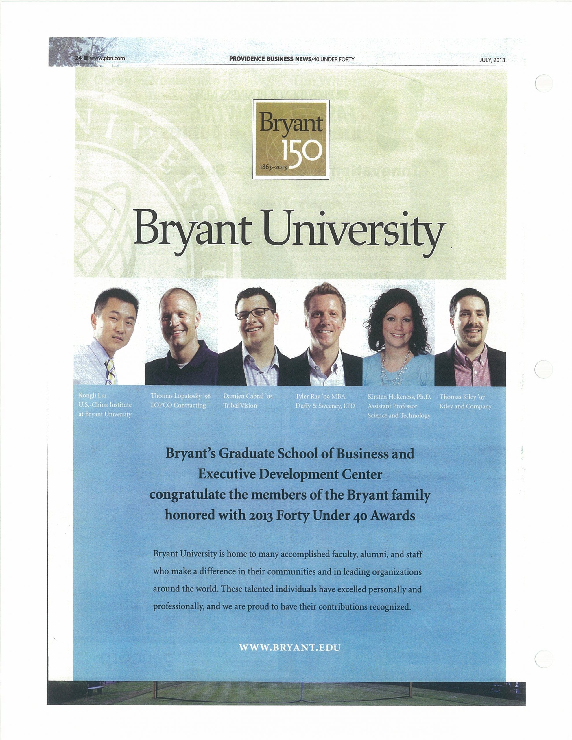 Prior to earning his degrees, Tom graduated from Classical High School in Providence, RI (where Tom won the ‘Al Morro Award’ for Football in 1994). After High School, Tom left for the University of South Carolina to pursue his dream of playing football. Soon after his mother passed away in 1997, he relocated back to RI and completed his college career at Bryant. Tom continued to play minor league football for 9 years and was part of 4 championship-playing football teams.