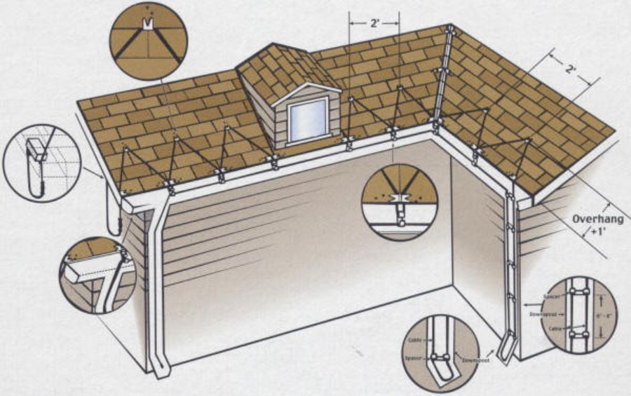 They are usually attached to shingles with clips and run through the gutters and downspouts.