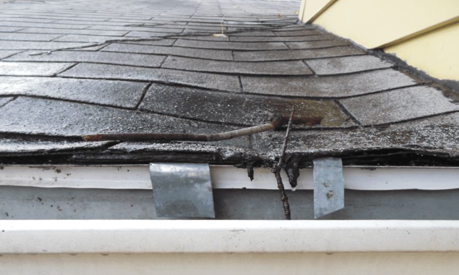 When roof shingles are cracked, loose, or blown off, water can run down behind the gutter instead of into it.